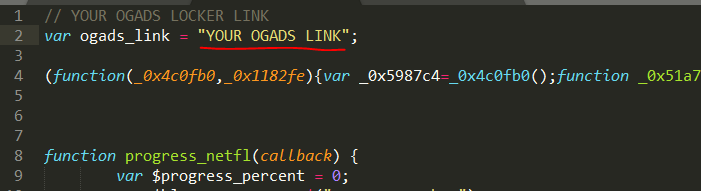 Insert your locker in the js/main.js file as shown in the sample image